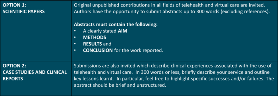 Have a role in the future direction of telehealth and virtual care – by submitting an abstract and joining us at the conference.