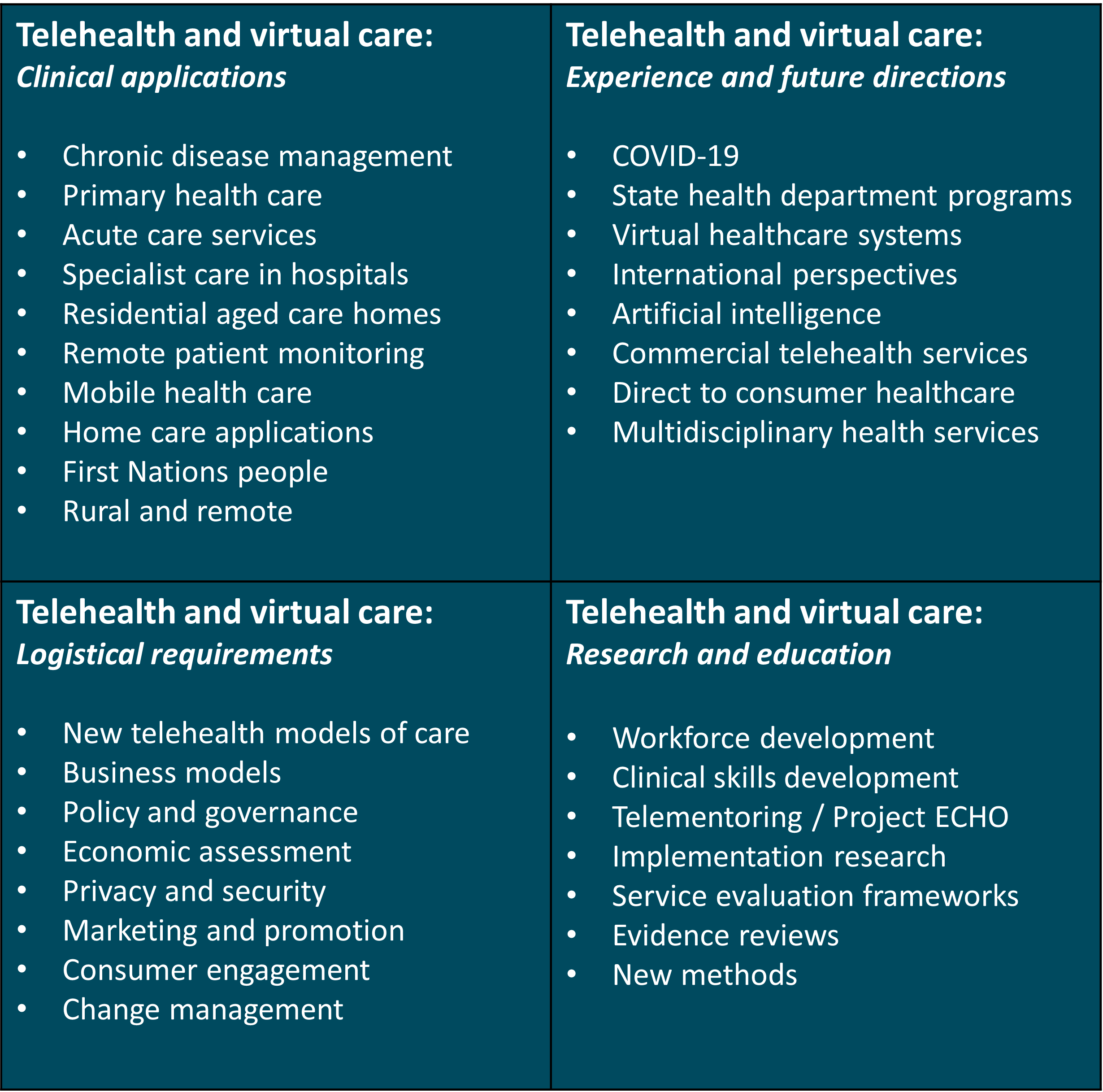 We encourage submissions relating to the clinical use of telehealth across a range of settings and disciplines including public and private hospitals, general practice, specialist services, allied health, nursing, residential aged care facilities, in the home and within First Nations community settings. The committee is very keen to receive submissions that report on failures (or challenges) as well as successful experiences involving telehealth and virtual care – see examples below.